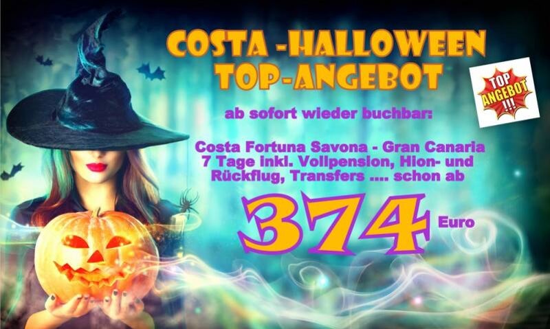 Unser sensationelles COSTA HALLOWEEN SPECIAL ist wieder buchbar - Costa hat Flugplätze hinzugekauft !