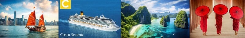 zur Sonderreise „Wunderbares Asien“ mit Costa Serena (Informationen zur Route, zu den Kabinen, zum Schiff und, und, und …) Die dort aufgeführten Reederei-Preise gelten aber nicht für Sie, denn Sie erhalten unsere o.a. Gruppen-Sonderpreise.